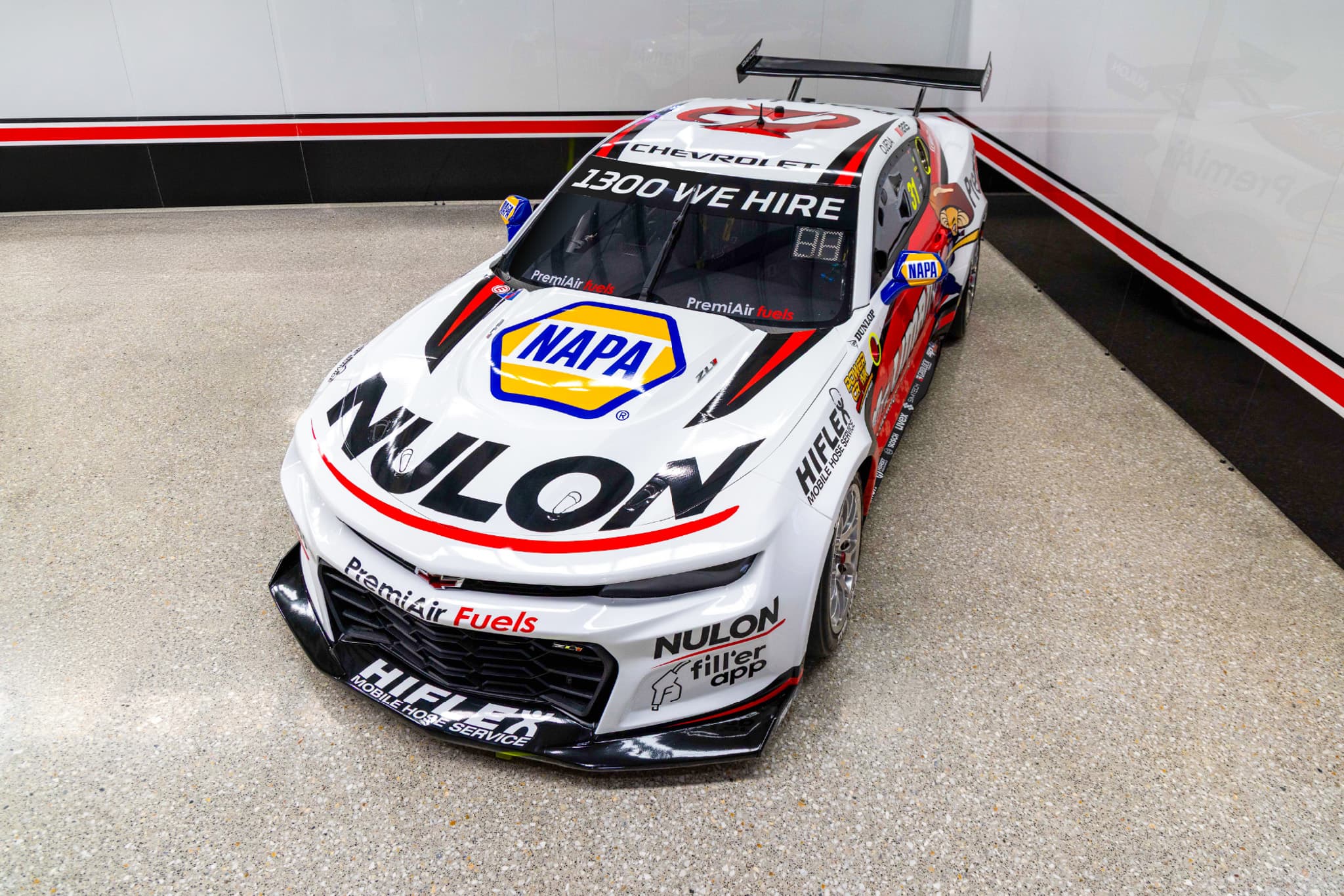 NAPA Auto Parts also increase their branding, taking predominant space on the bonnet of both cars and the side mirrors.