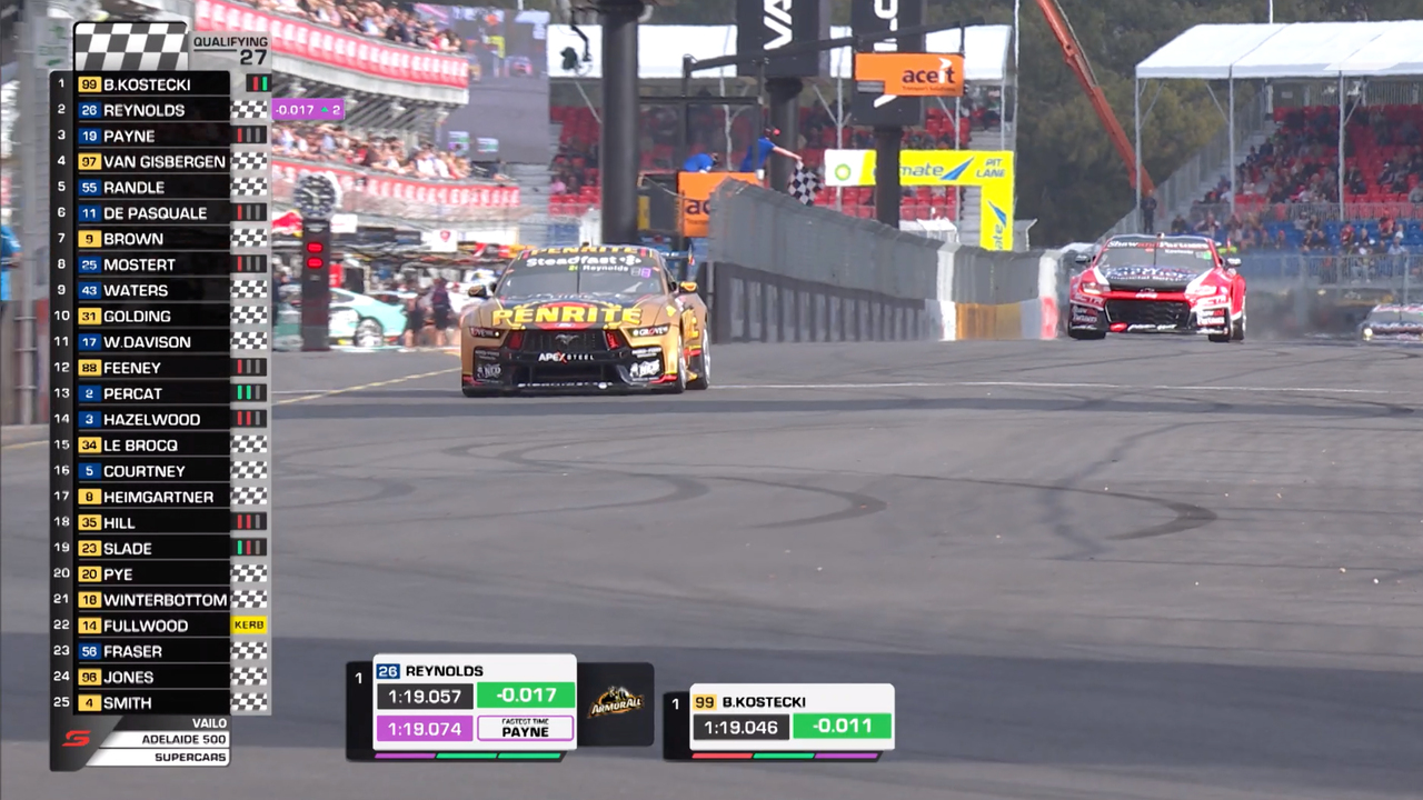 Payne was quickest after the first runs with a 1:19.0741s, with Reynolds behind on a 1:19.1683s. Van Gisbergen and Kostecki were just behind, with Will Brown (#9 Coca-Cola Camaro) fifth.