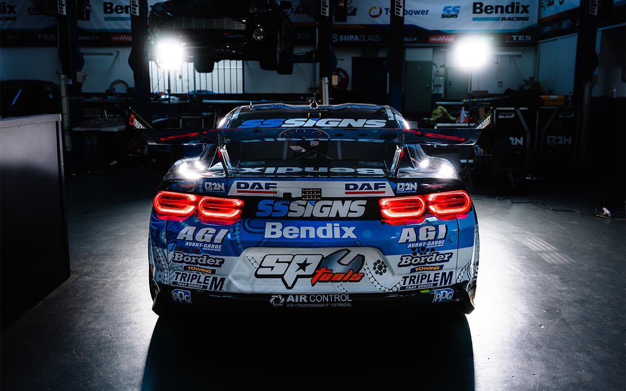 The livery on the #10 Chevrolet highlights Bendix’s commitment to honouring First Nations culture, with meeting places on the painting shown as a sign of journeying, representing the different locations Bendix gets to see through Supercars racing.