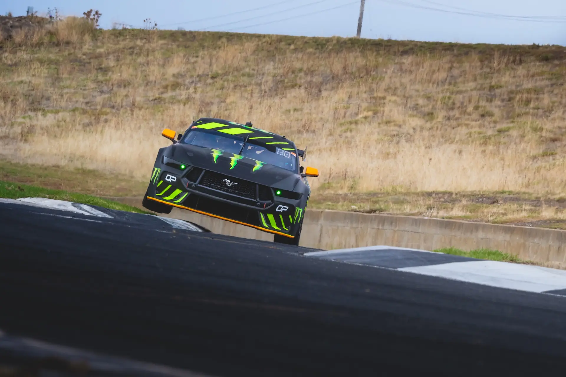 In a far cry to his McLaren F1 car, where he stays away from kerbs and powers through fast Grand Prix circuit corners, Piastri can be seen ragging the Mustang across Calder's big kerbs.